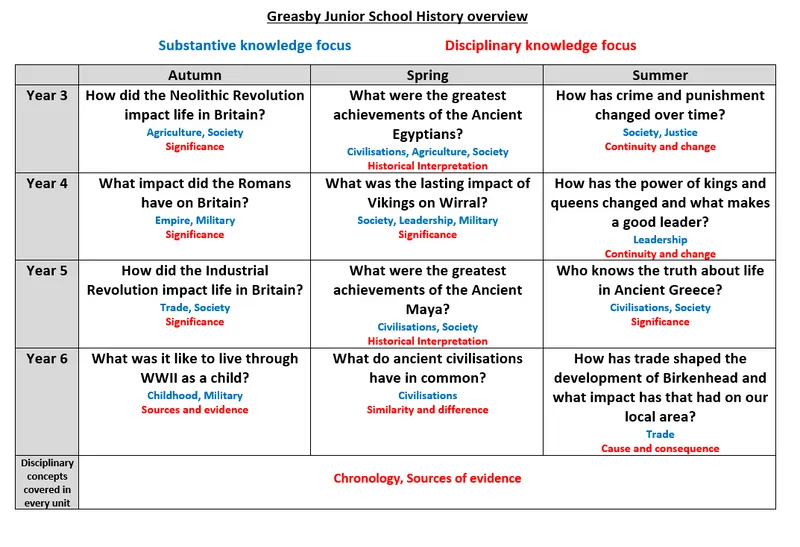 History at Greasby Junior School is an exciting journey through time that sparks curiosity and deepens understanding. Our curriculum is designed to help children make sense of the past and its influence on the present—from ancient civilisations to the local impact of World War II.